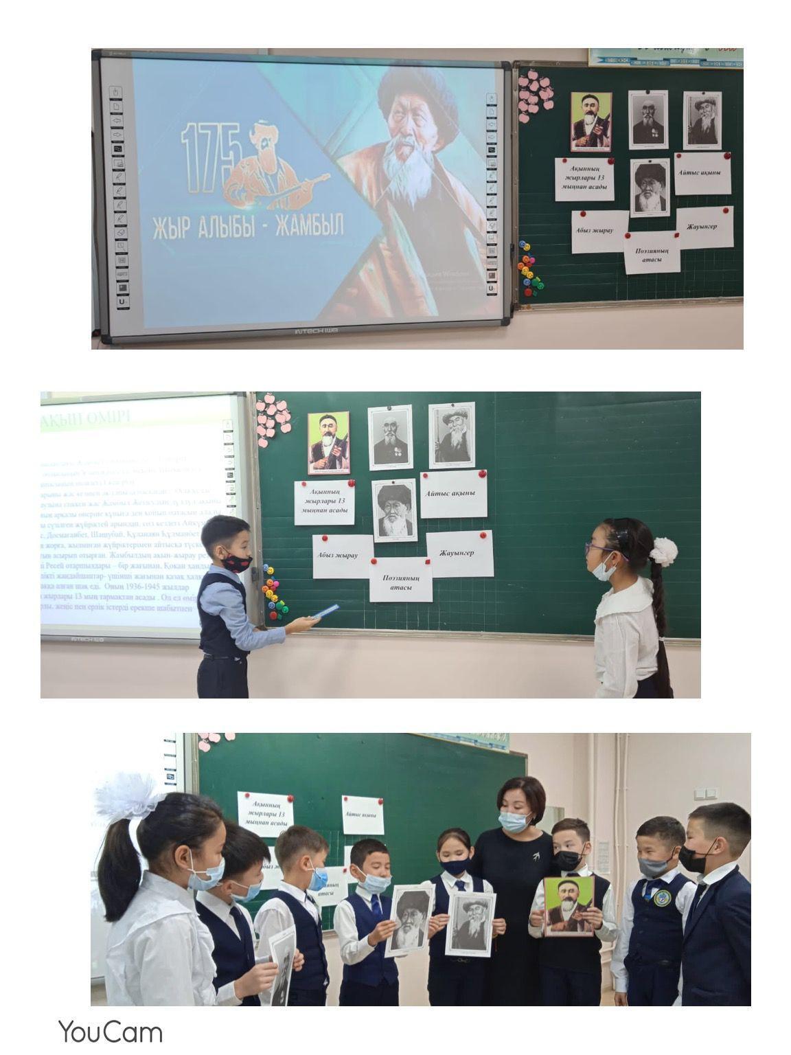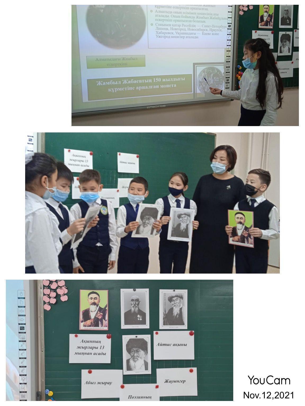 Алматы қаласы, Наурызбай ауданы №176 мектеп-гимназиясында Жамбыл Жабаевтың 175 жылдығына орай 3 “В” сыныбы «Жыр алыбы - Жамбыл» тақырыбында ашық тәрбие сағат өтті.