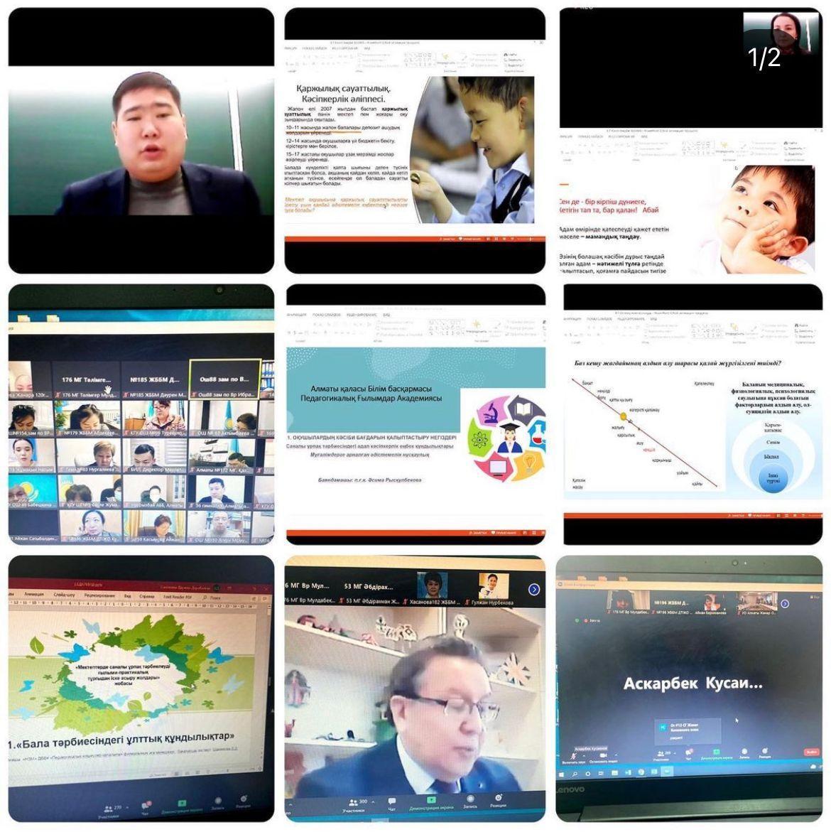 Алматы қаласы Білім бөлімінің ұйымдастыруымен “Мектептерде саналы ұрпақ тәрбиелеуді ғылыми-практикалық тұрғыдан іске асыру” тақырыбында ZOOM платформасы арқылы онлайн-семинар өтті.