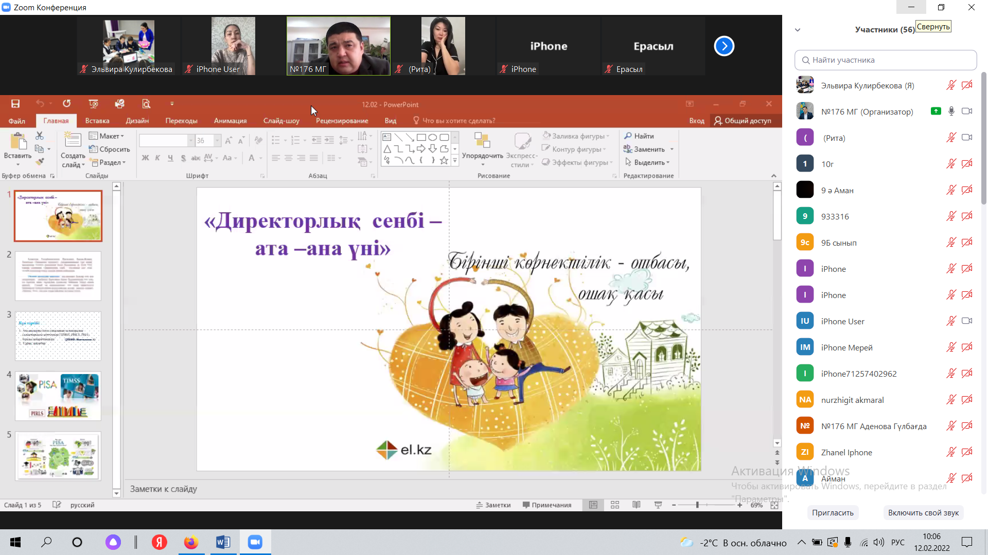 Алматы қаласы Наурызбай ауданы №176 мектеп-гиназиясында 2022 жылдың 11 ақпан күні «Директорлық сенбі - ата-ана үні» тақырыбында 9-10 сыныптың ата-аналарымен онлайн кездесу өткізілді.