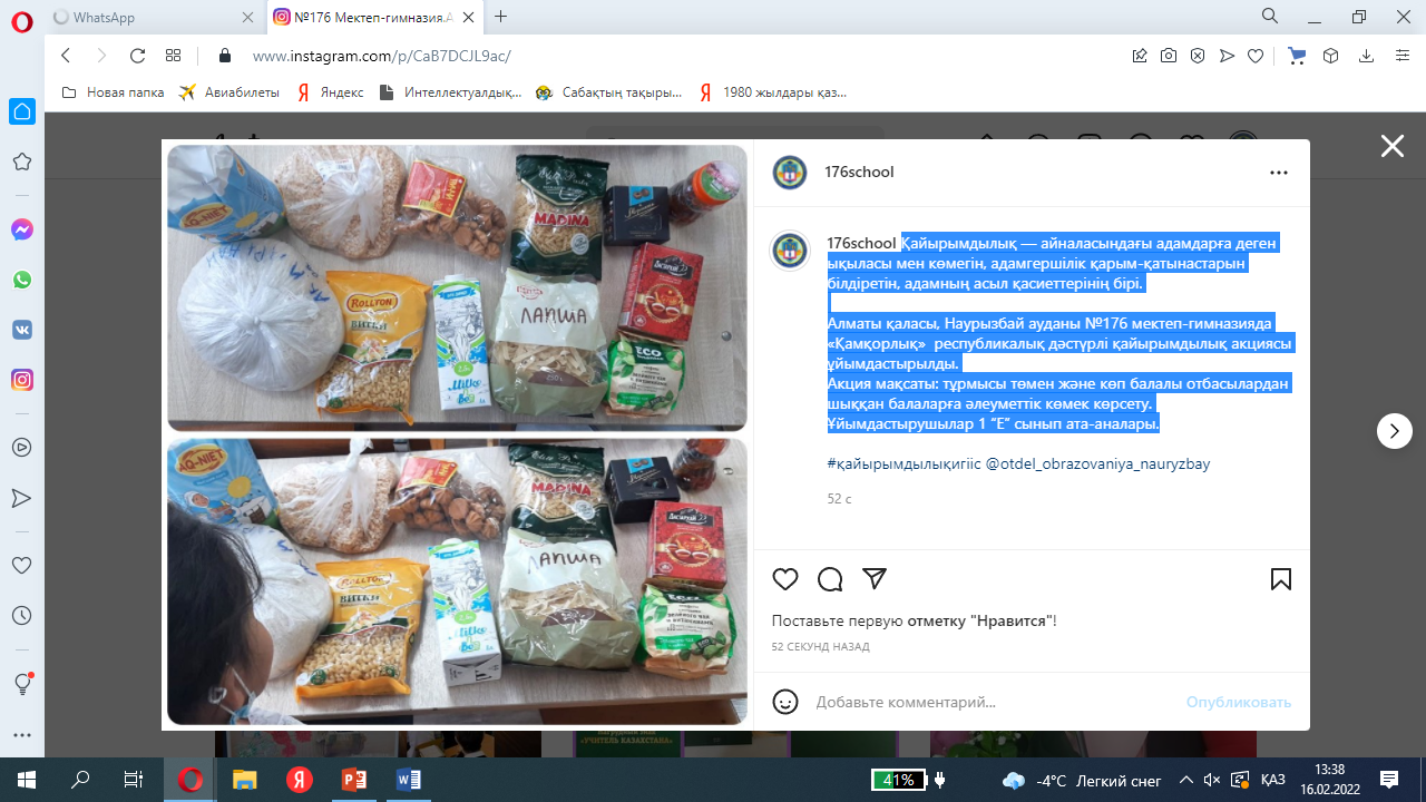Алматы қаласы, Наурызбай ауданы №176 мектеп-гимназияда «Қамқорлық» республикалық дәстүрлі қайырымдылық акциясы ұйымдастырылды.