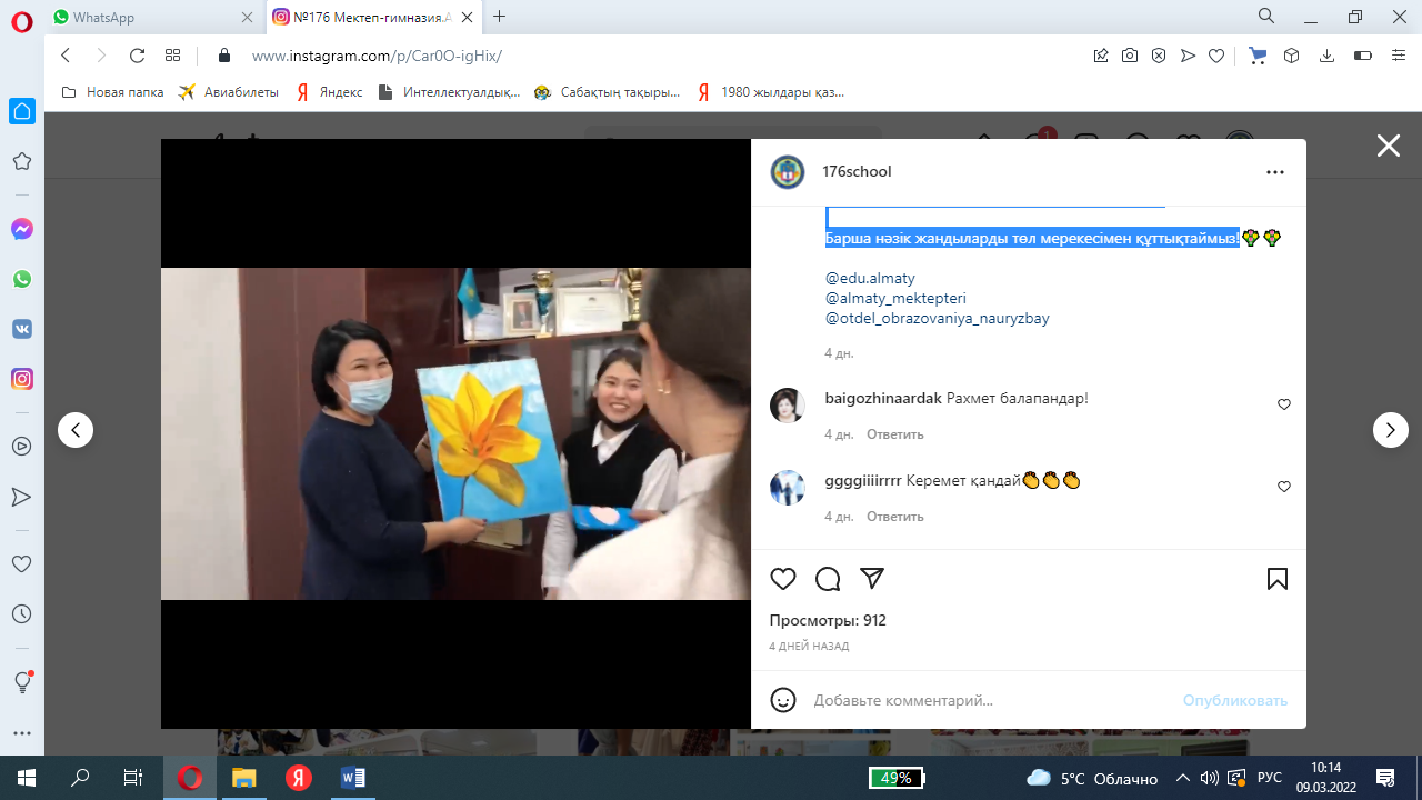176 мектеп-гимназияның 9 д сынып оқушылары 8-наурыз Халықаралық әйелдер күнімен шын жүректен құттықтайды.