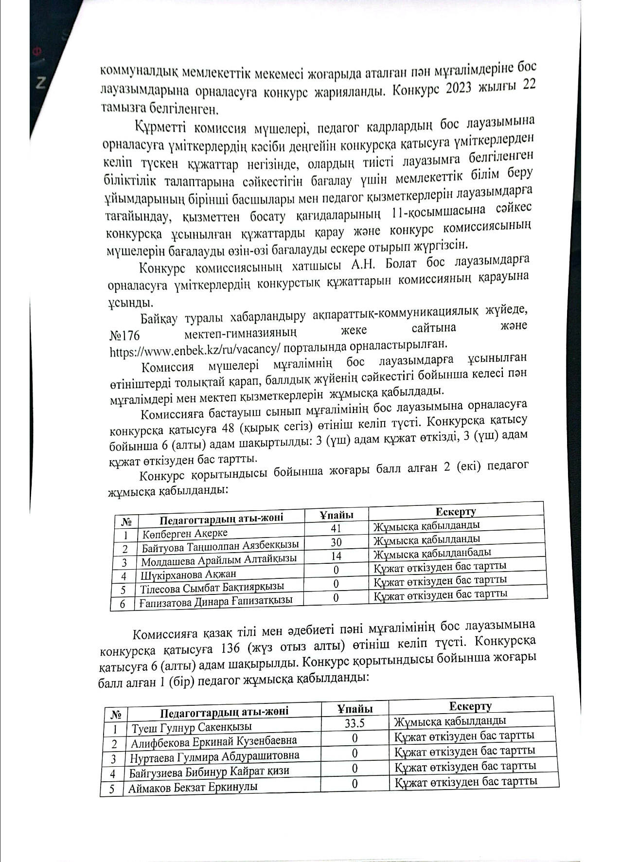 22 август 2023 0 1 2 3 4 5 Бос лауазымдарға орналасуға арналған конкурстың қорытындысы. Осы беттің QR-коды:QR-код этой страницы: