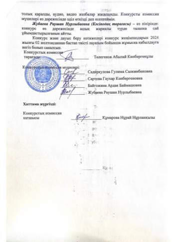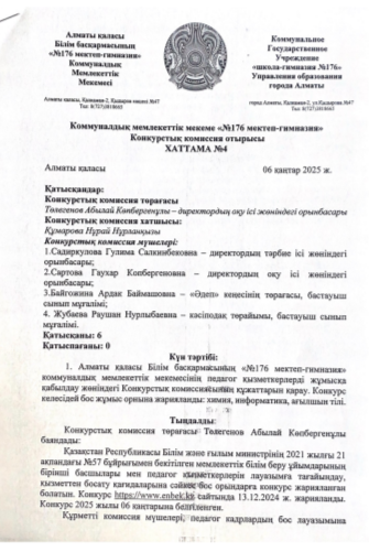 06 декабрь 2024 0 1 2 3 4 5 Педагогтерді жұмысқа қабылдау бойынша конкурстық комиссия хаттамасы №4 Осы беттің QR-коды:QR-код этой страницы: