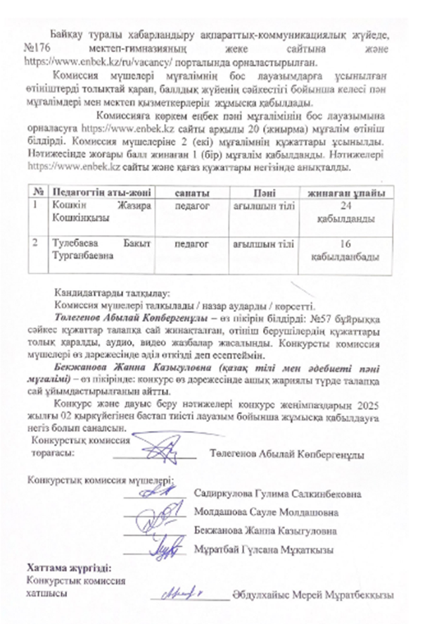 30 июль 2025 0 1 2 3 4 5 Педагогтерді жұмысқа қабылдау бойынша конкурстық комиссия хаттамасы №2 (2025-2026 оқу жылы) Осы беттің QR-коды:QR-код этой страницы:
