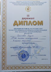 Оқушымыз «Жарқын болашақ» республикалық қазақ тілі олимпиадасының қалалық кезеңінің ІІІ орын иегері
