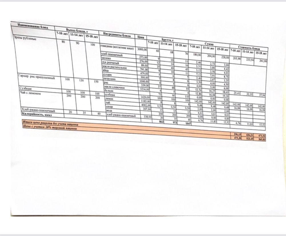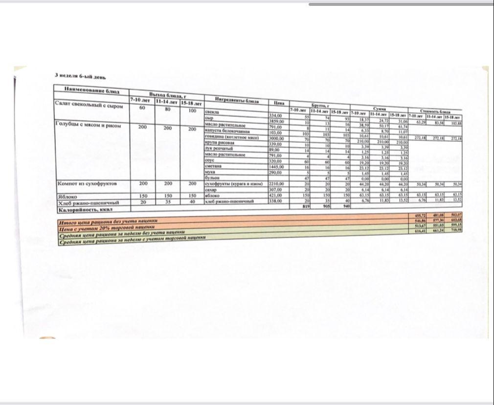Ыстық тамақ менюі жаз-күз