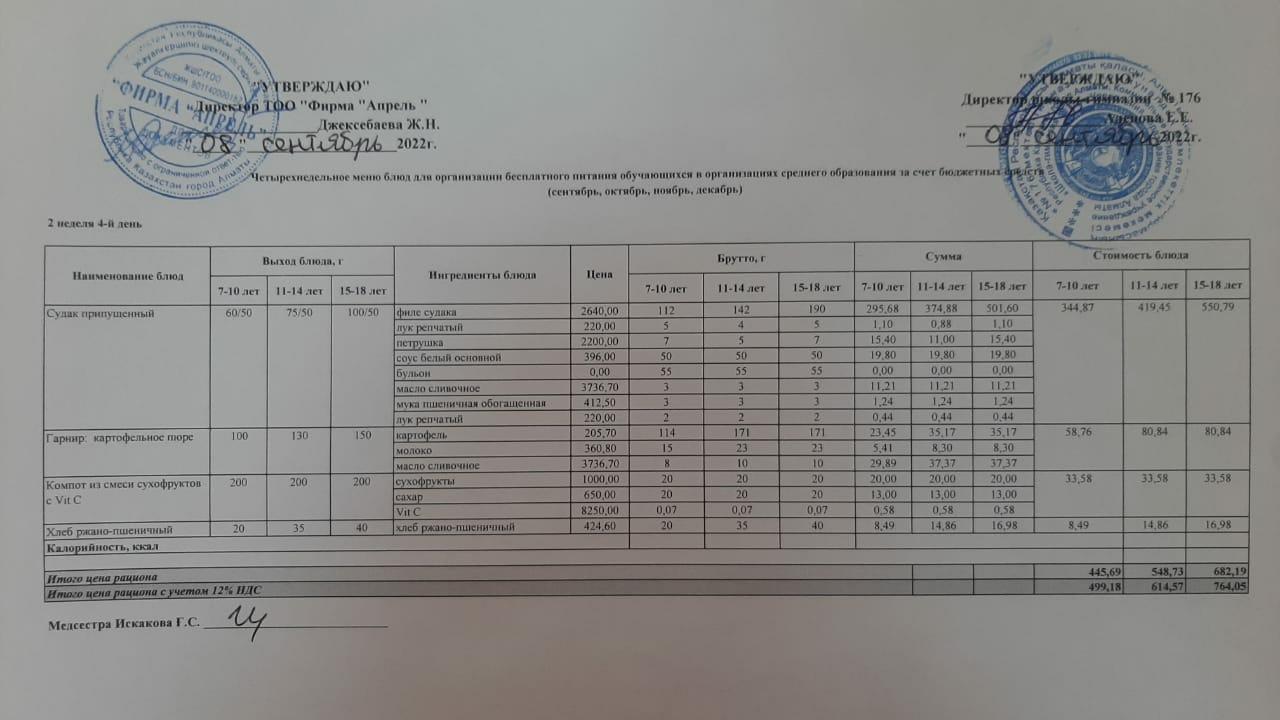 08.09.2022ж Асхана мәзірі