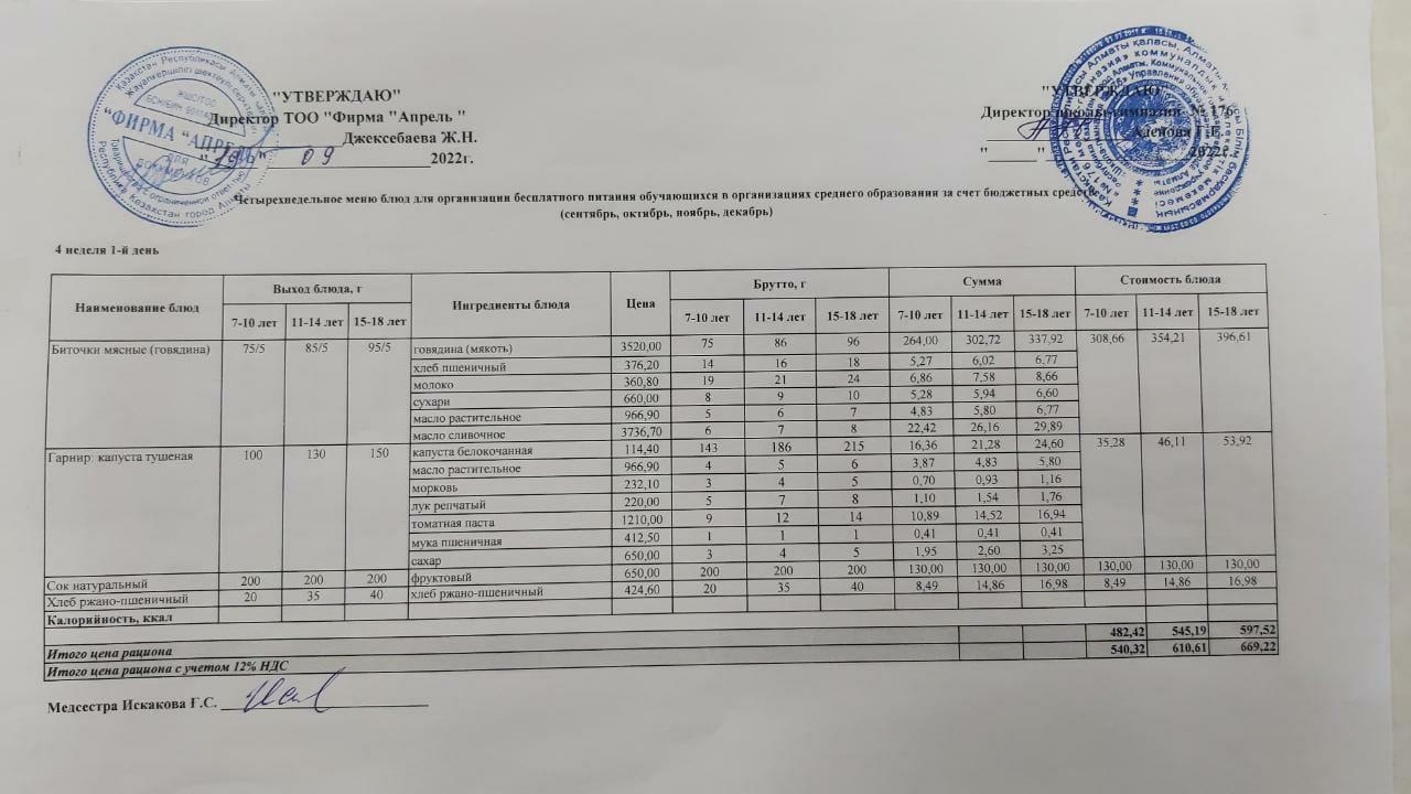 12.09.2022ж Асхана мәзірі