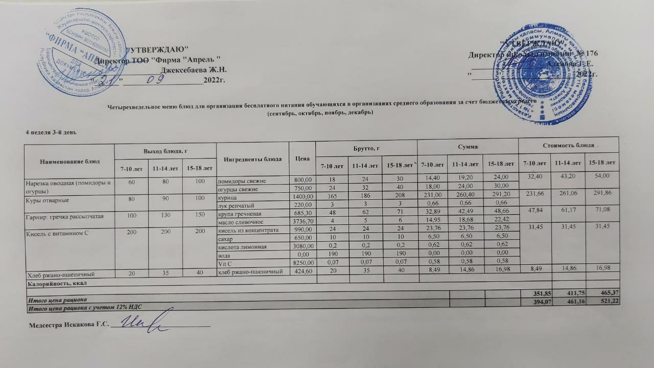 12.09.2022ж Асхана мәзірі