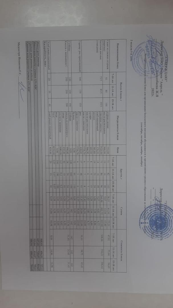 07.10.2022ж Асхана мәзірі