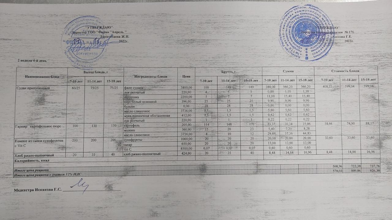 22.11.2022 ж Асхана мәзірі