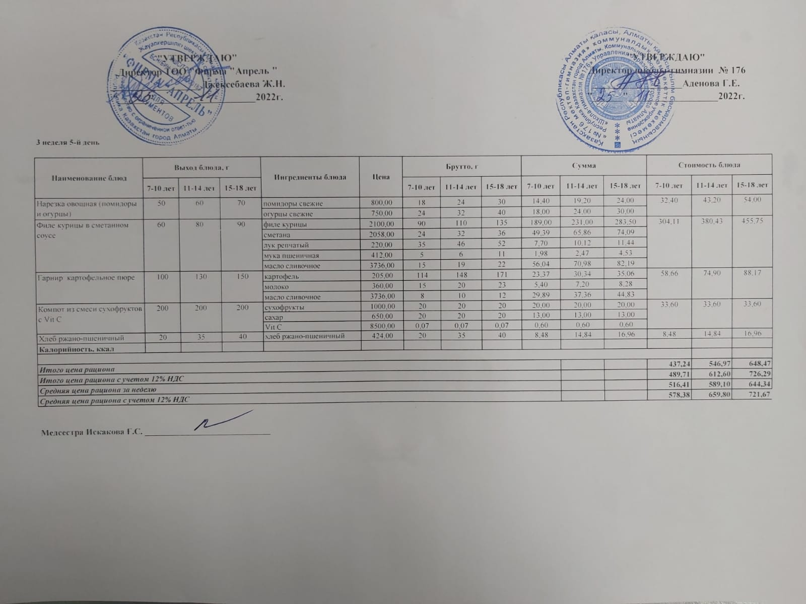 09.11.2022ж Асхана мәзірі