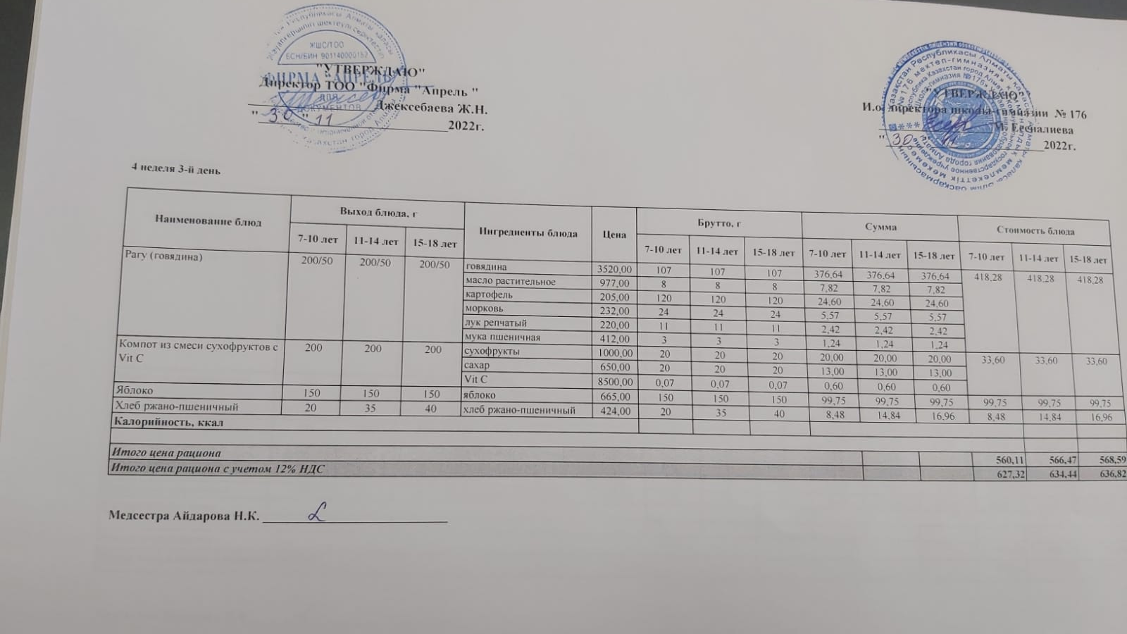 "№176-мектеп - гимназия" оқушыларын пайдалы және сінімді (сапалы) тамақпен қамтамсыз ету