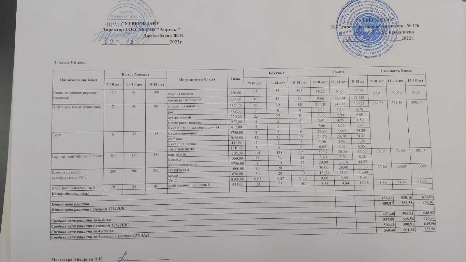 Ыстық тамақ менюі қыс-көктем Еxcel нұсқасы