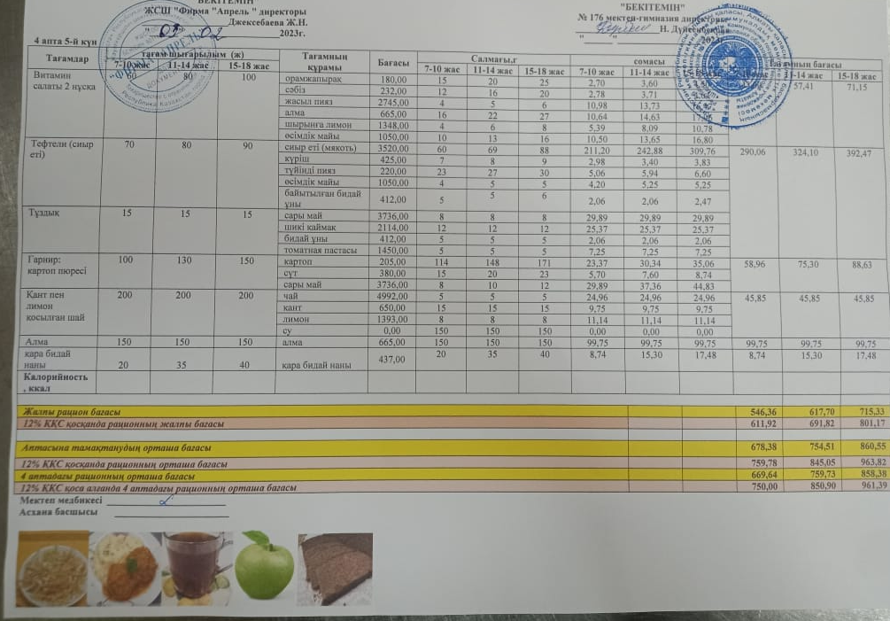 2022-2023 оқу жылындағы №176 мектеп-гимназиясының қаңтар айындағы оқушылардың ыстық тамақ акті