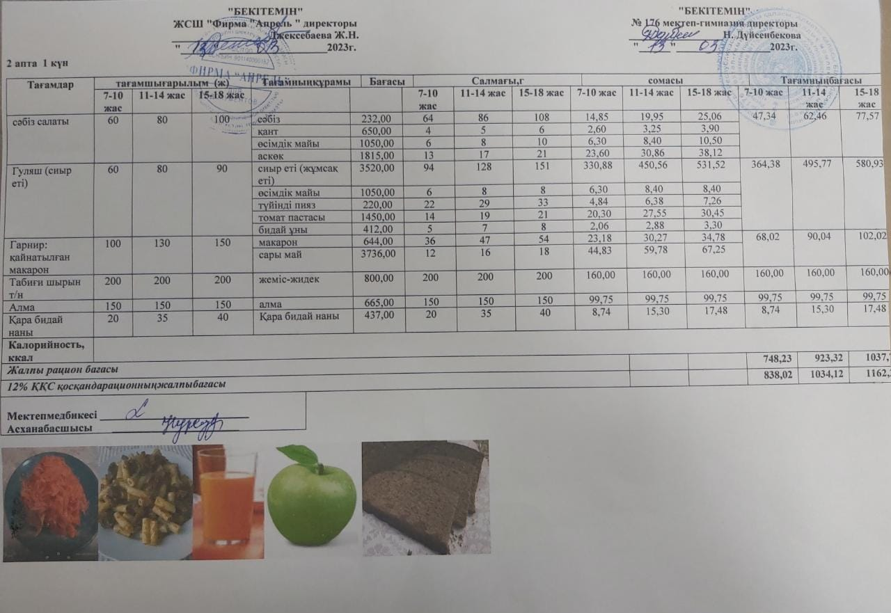2022-2023 оқу жылындағы №176 мектеп-гимназиясының ақпан айындағы оқушылардың ыстық тамақ акті