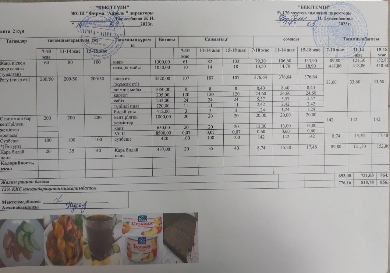2022-2023 оқу жылындағы №176 мектеп-гимназиясының ақпан айындағы оқушылардың ыстық тамақ акті