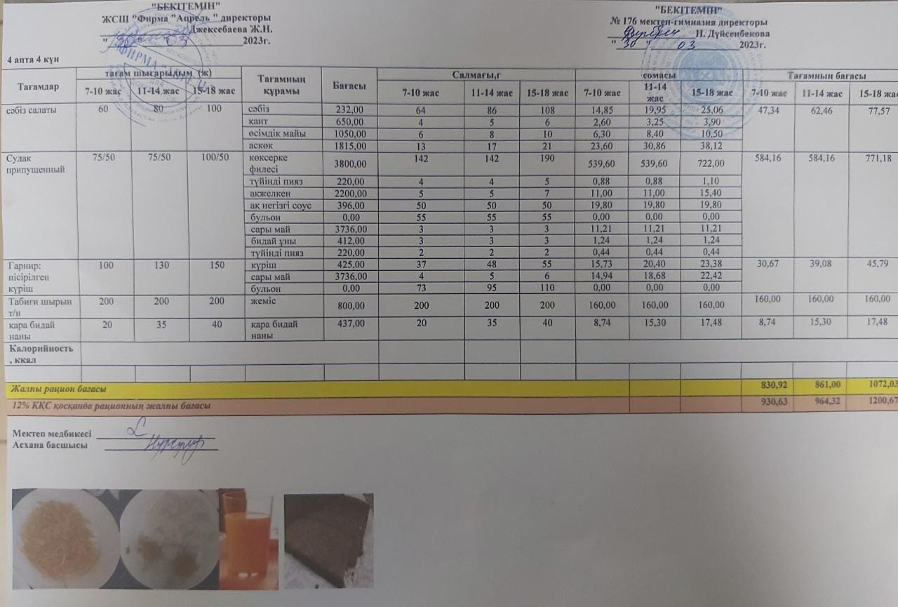 30.03.2023 ж Асхана мәзірі