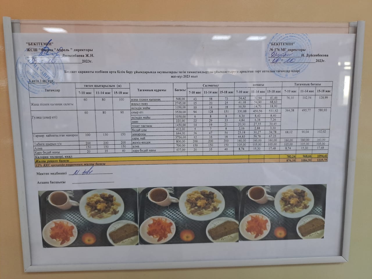 18.10.2023 ж Асхана мәзірі