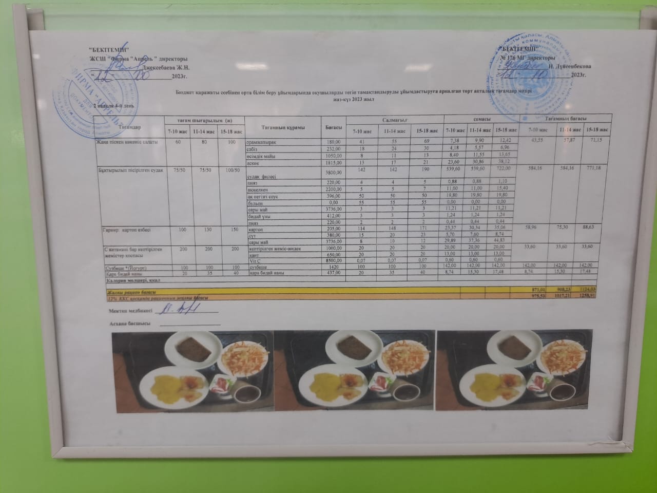 20.09.2023 ж Асхана мәзірі