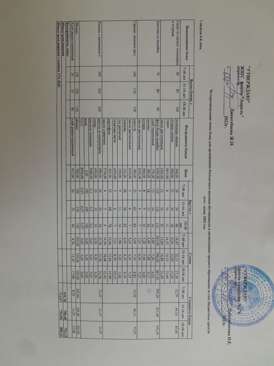 04.10.2023 ж Асхана мәзірі