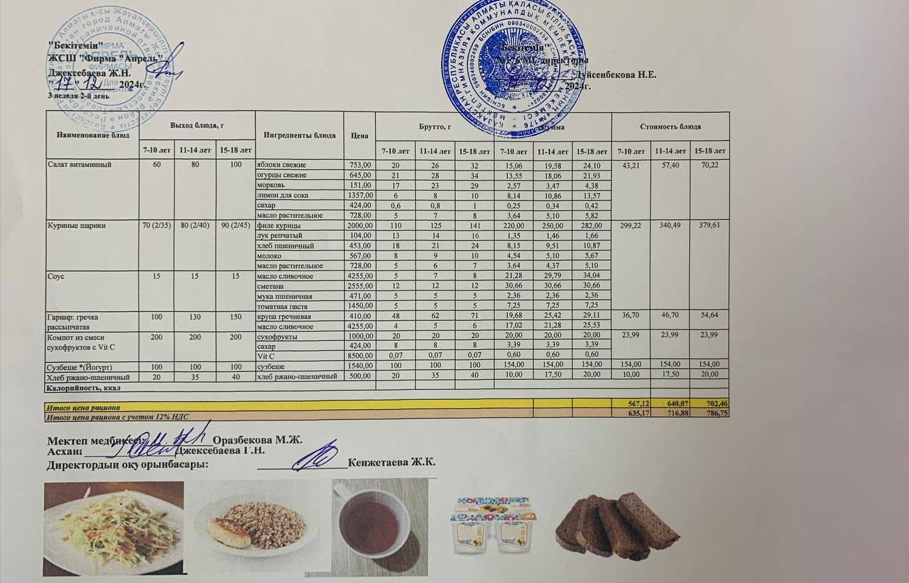 17.12.2024 ж Асхана мәзірі