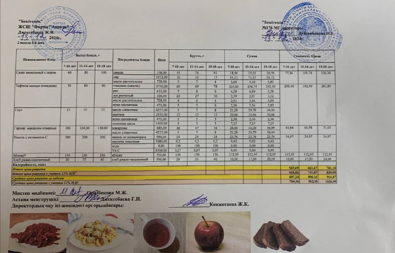 14.11.2024 ж Асхана мәзірі