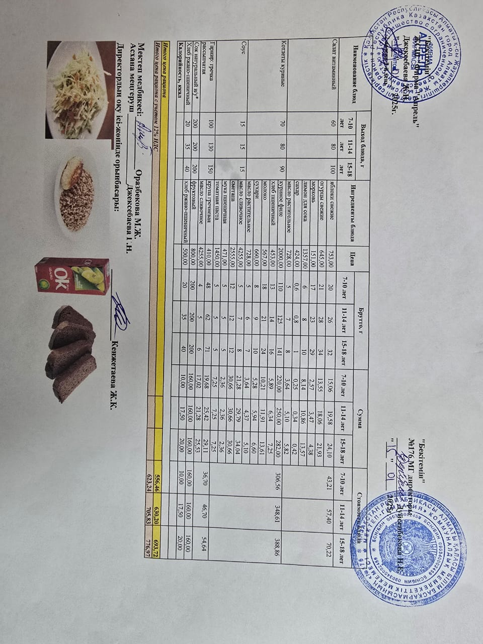 2024-2025 оқу жылындағы №176 мектеп-гимназиясының Желтоқсан айындағы оқушылардың ыстық тамақ акті