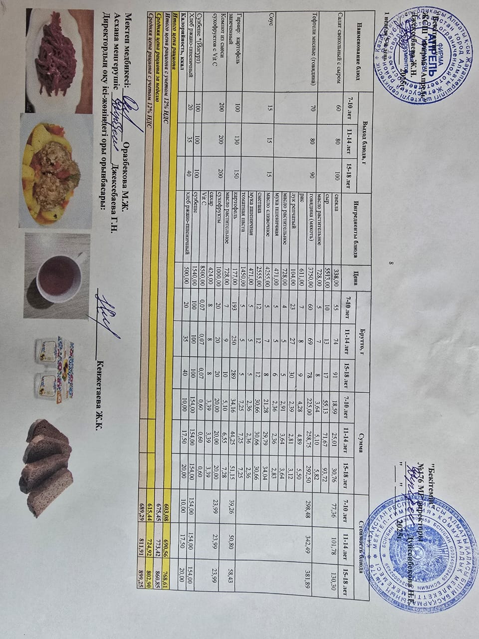 2024-2025 оқу жылындағы №176 мектеп-гимназиясының Қаңтар айындағы оқушылардың ыстық тамақ акті
