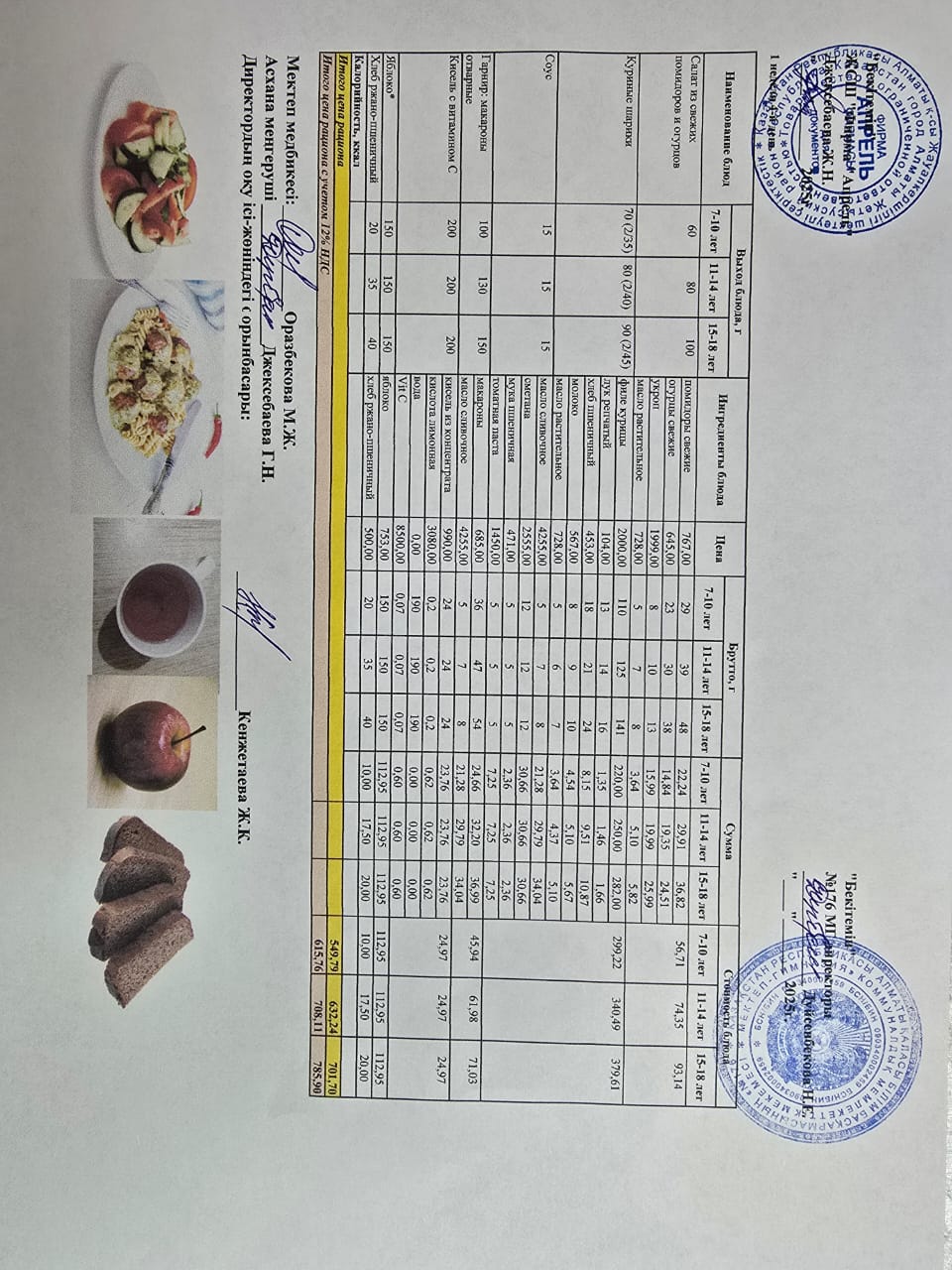 2024-2025 оқу жылындағы №176 мектеп-гимназиясының Желтоқсан айындағы оқушылардың ыстық тамақ акті