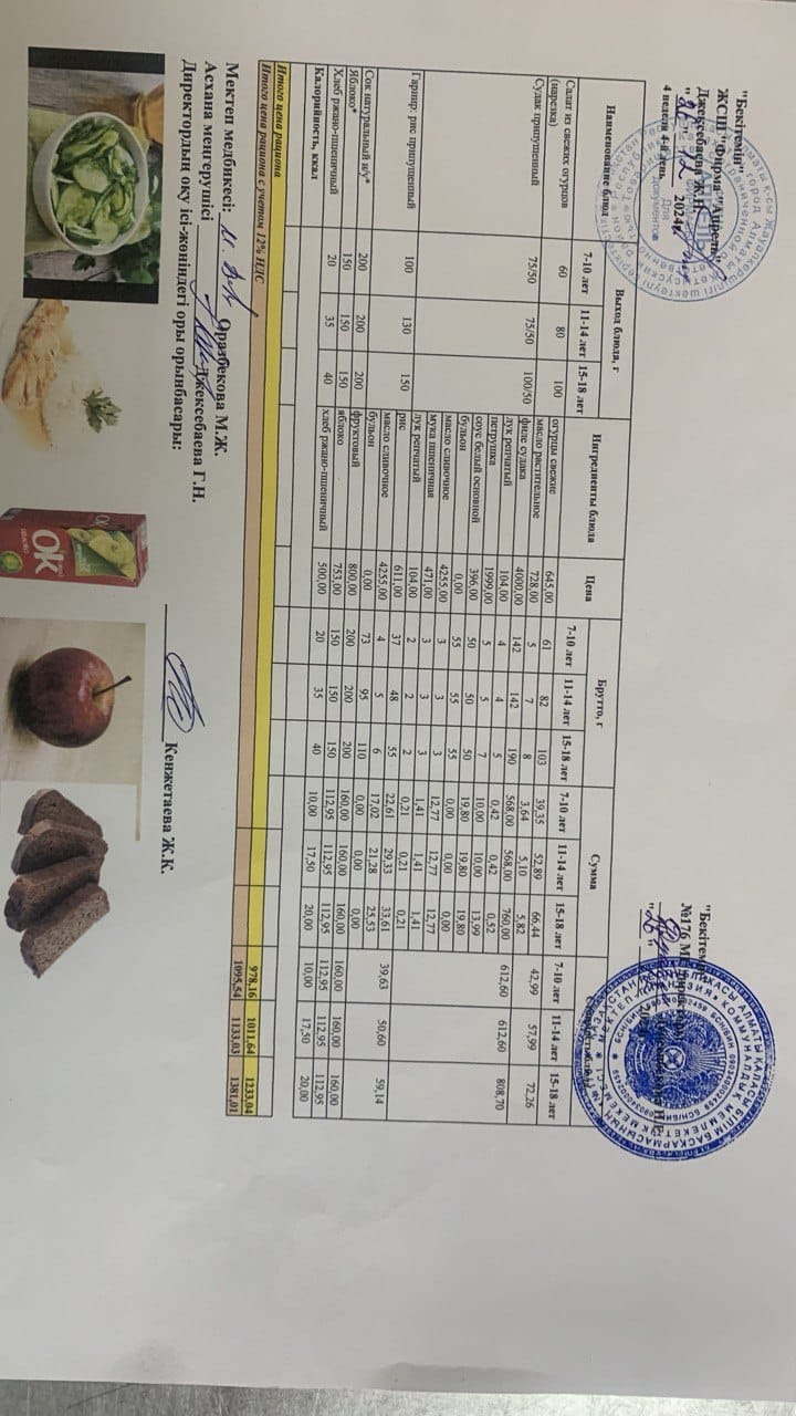 11.11.2024 ж Асхана мәзірі