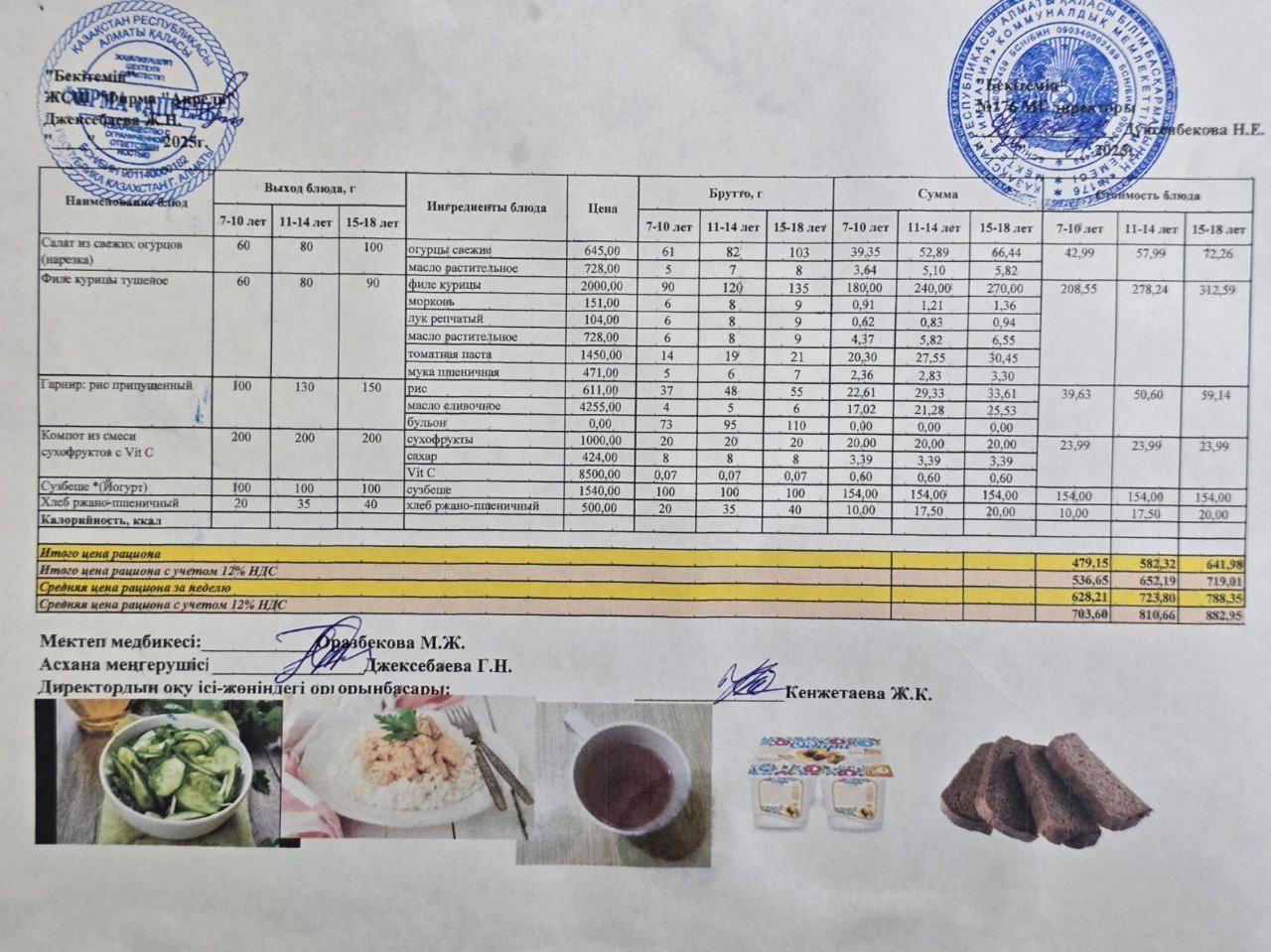 24.01.2025 ж Асхана мәзірі