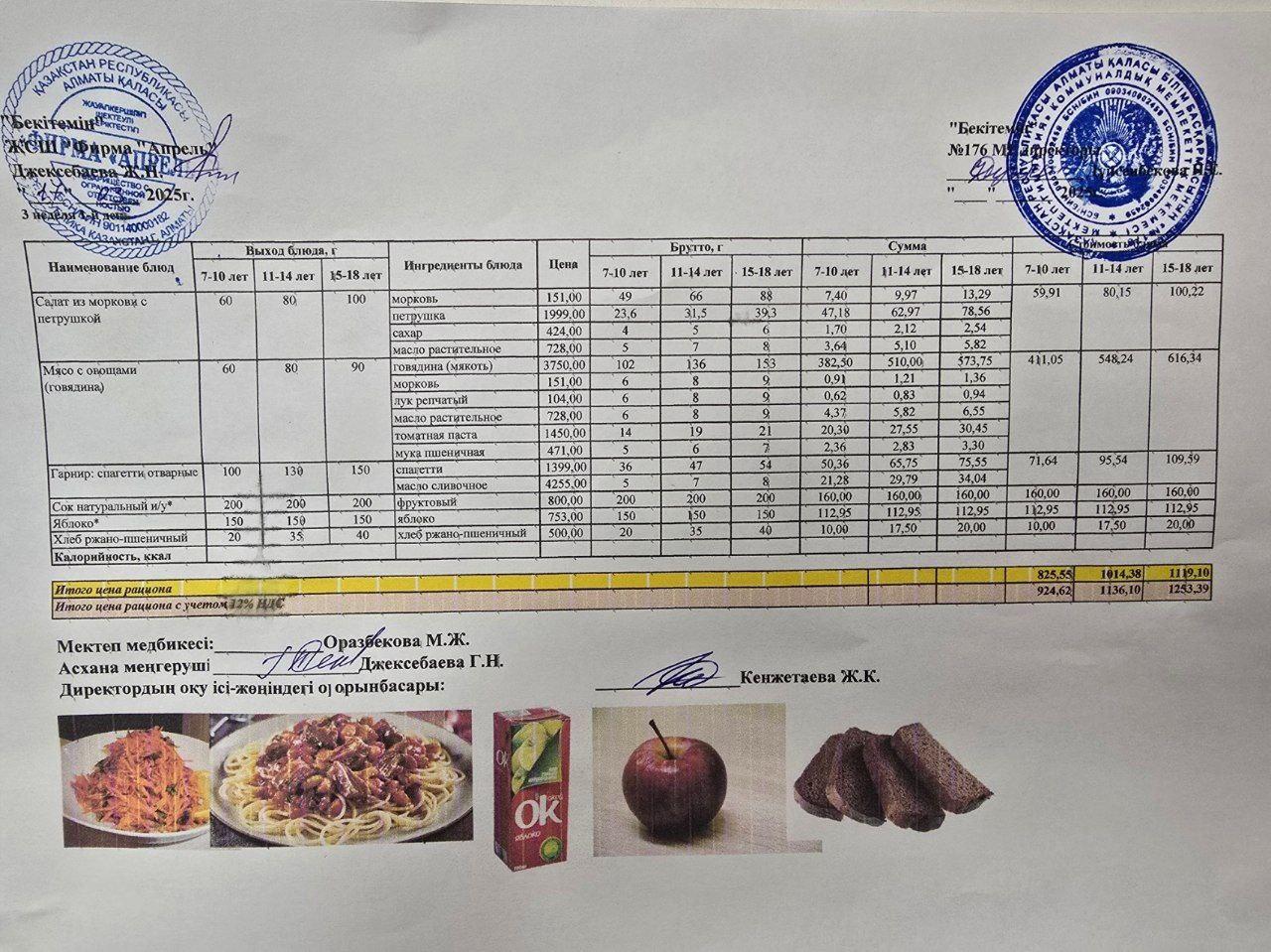 20.01.2025 ж Асхана мәзірі
