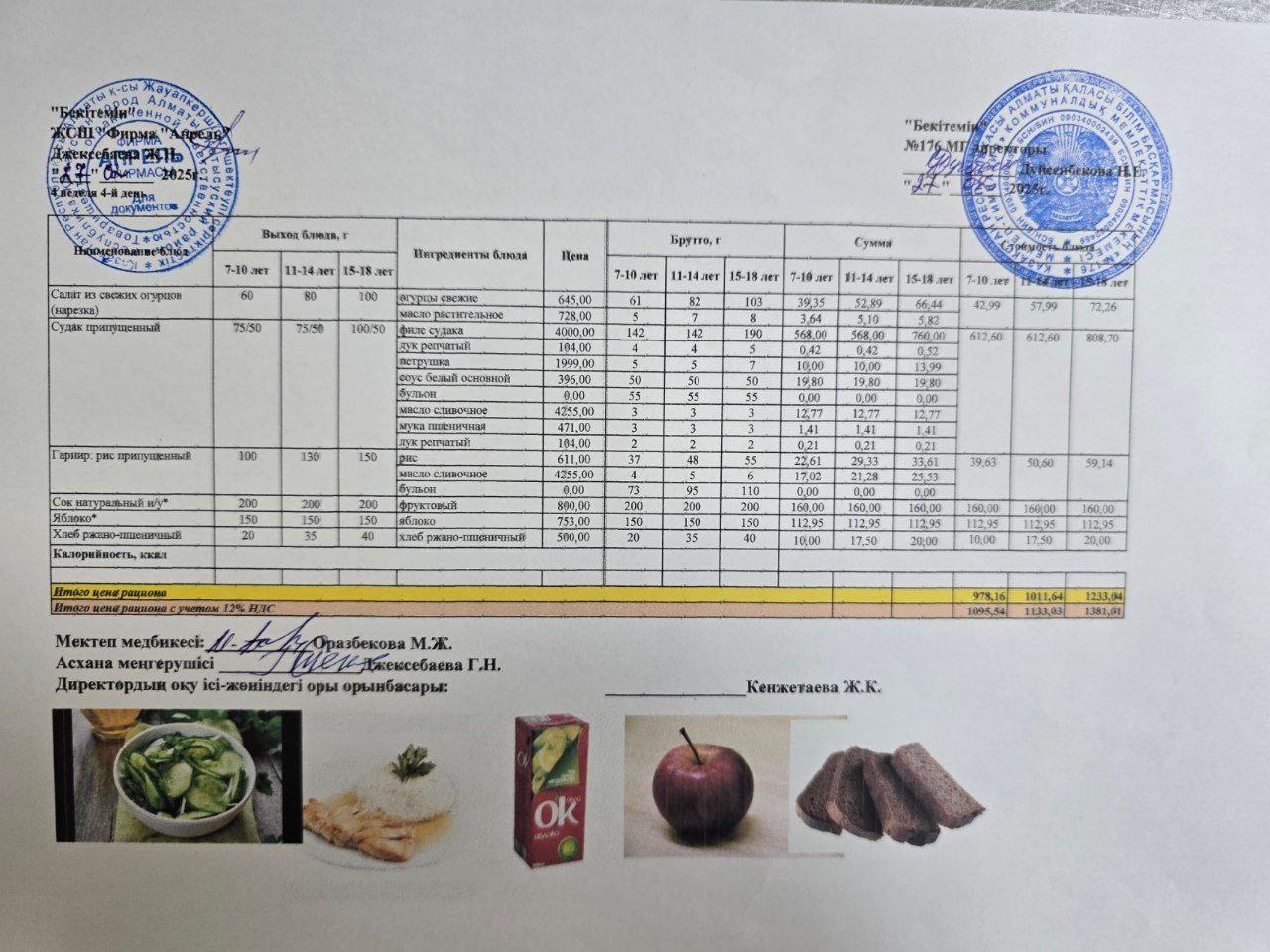 2024-2025 оқу жылындағы №176 мектеп-гимназиясының асхана жұмысын қадағалауды ұйымдастыру және тамақтану сапасына мониторинг бұйрығы