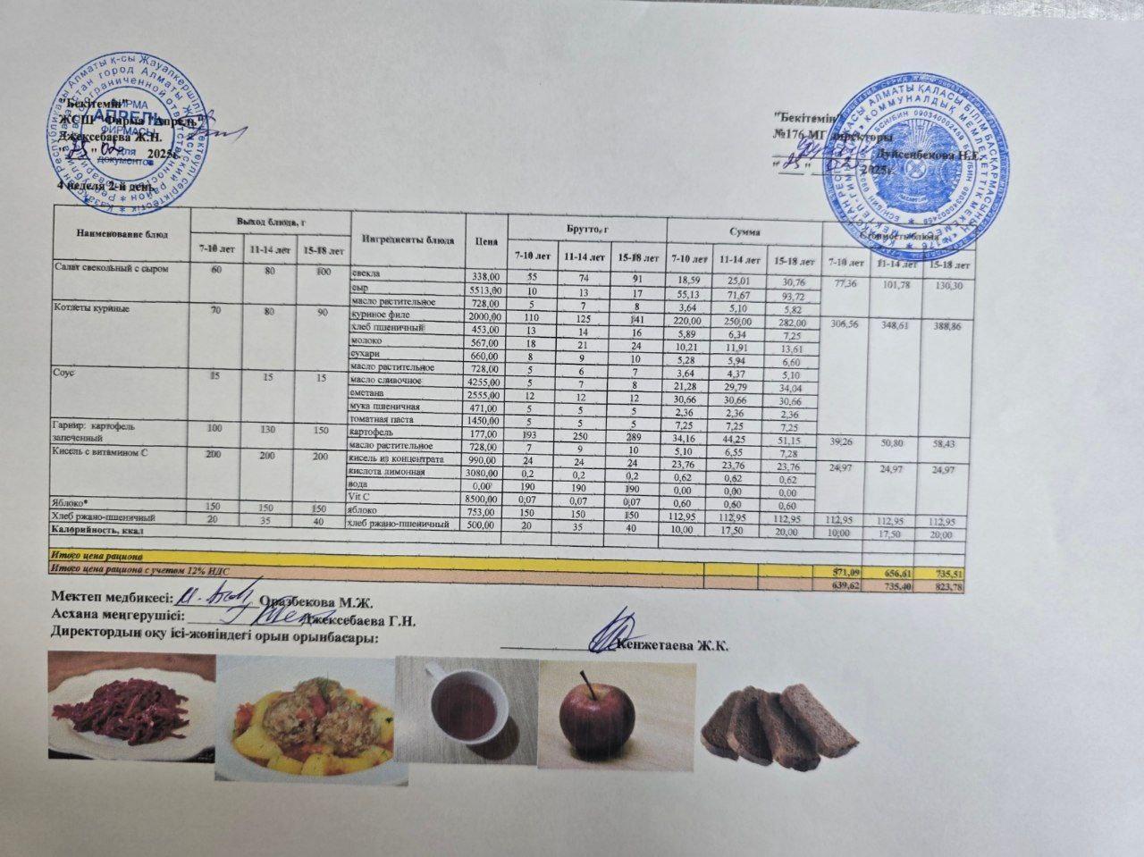 25.02.2025 ж Асхана мәзірі