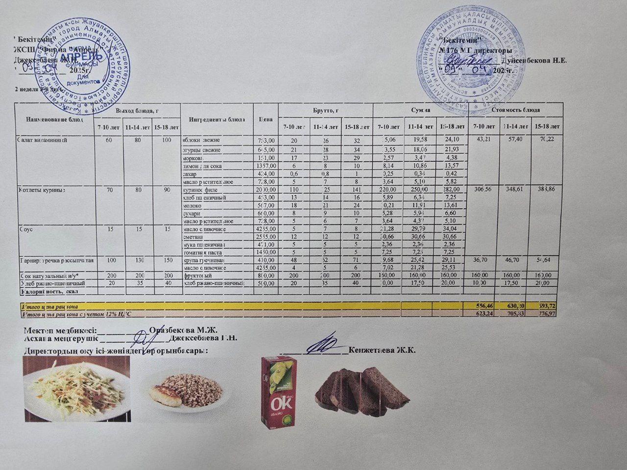 09.04.2025 ж Асхана мәзірі