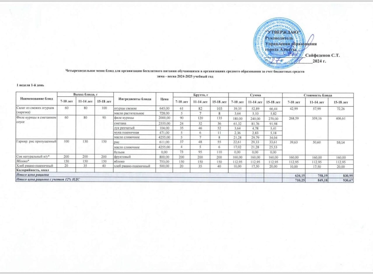 Утвержденный меню питания