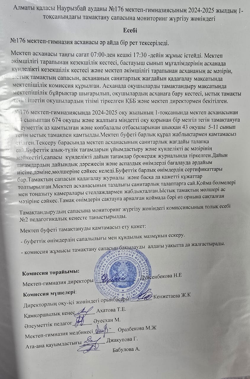 24 октябрь 2024 0 1 2 3 4 5 2024-2025 оқу жылындағы №176 мектеп-гимназиясының 1 тоқсандағы тамақтану сапасын мониторинг есебі Осы беттің QR-коды:QR-код этой страницы: